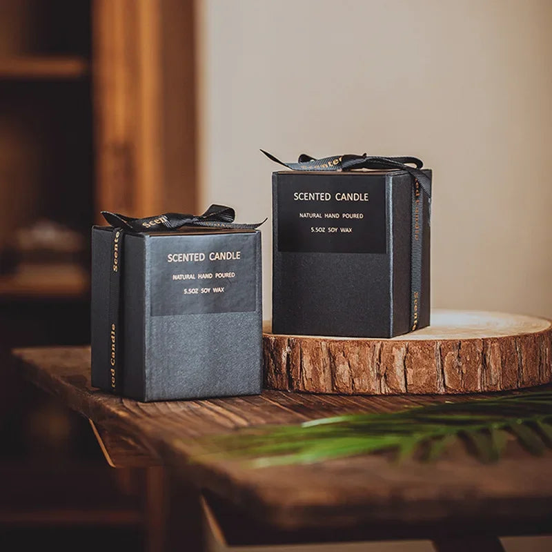 100% Natural Soy Wax Candles Jar Sandalwood Scented Black Candles Glass Container Home Decorative Vase