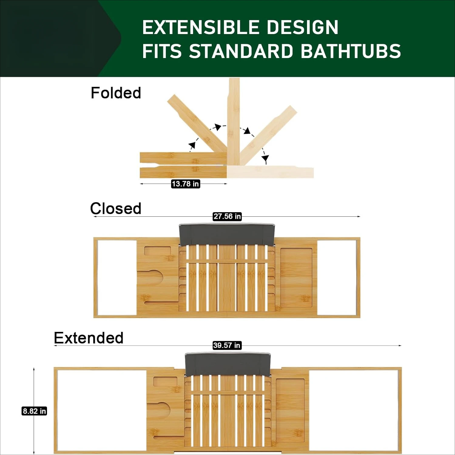 Transform your bath into a luxurious retreat with this foldable bamboo bathtub caddy that expands from 27.5" to 40 inches, keeping your book, glass, and devices within easy reach.