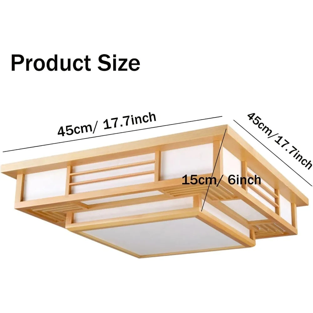 LED Ceiling Light Remote Dimming Japanese Zen Style Wood Fixture