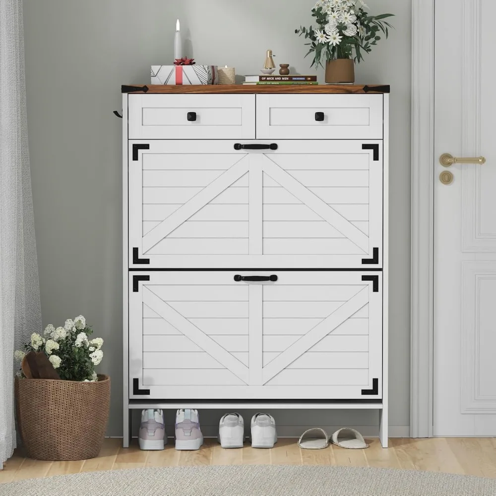 Shoe Cabinet with 2 Flip Drawers, Hidden Shoe Storage Cabinet with 2 Pull-Out Drawers, Farmhouse Shoe Organizer for Entryway, Na
