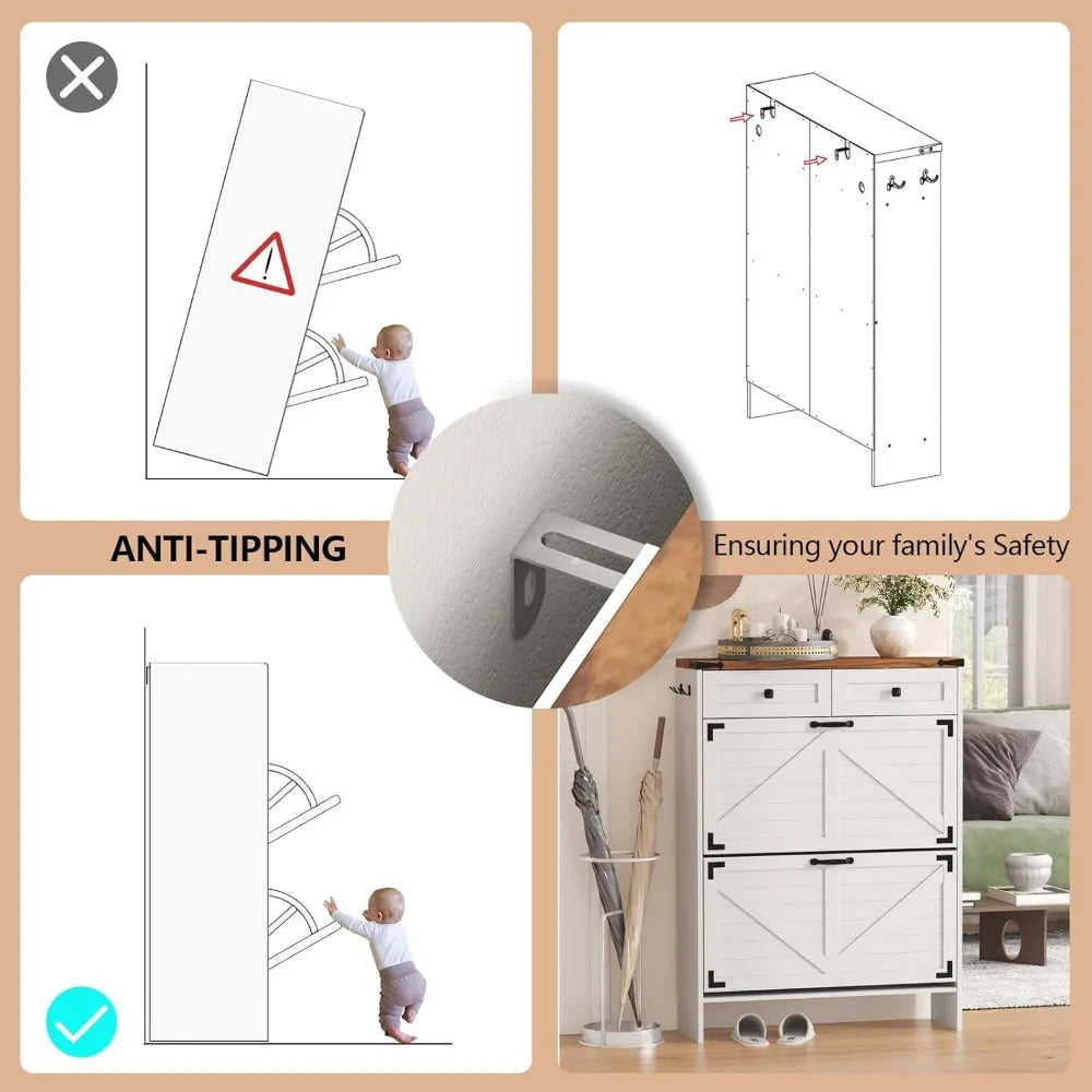 - 【Durable & Safety】This shoe cabinet storage for Entryway is made of high quality MDF which is durable and sturdy enough for using a long years. With an anti-tipping devices for enhanced stability, ensuring it won't accidentally fall over.